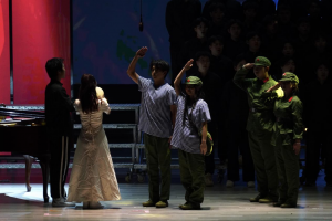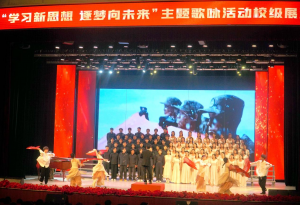最后四个时代的人物出现,一方面表示着中华民族从站起来,到强起来,到富起来,另一方面更能透露着我们中华民族传承之火生生不息。比赛现场上,同学们精神饱满、斗志昂扬、纵情放歌,充分展现了继教学子的风采。高扬的红旗,彰显了浓浓的爱国情怀;荡气回肠、感心动耳。铿销之音展示了历史与如今的繁华盛世,表达对祖国深沉的热爱,这不仅仅是同学们对历史的铭记,是对未来充满希望的憧憬,更是表达了同学们不负时代、不负人民的理想。