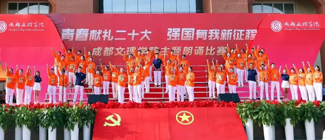2022年4月28日16点30分,为迎接党的二十大胜利召开、建团一百周年、纪念五四运动一百零三周年,进一步发扬革命传统和优良作风,激发广大师生爱国爱党爱社会主义的巨大热情,成都文理学院举办《青春献礼二十大 强国有我新征程》朗诵比赛。